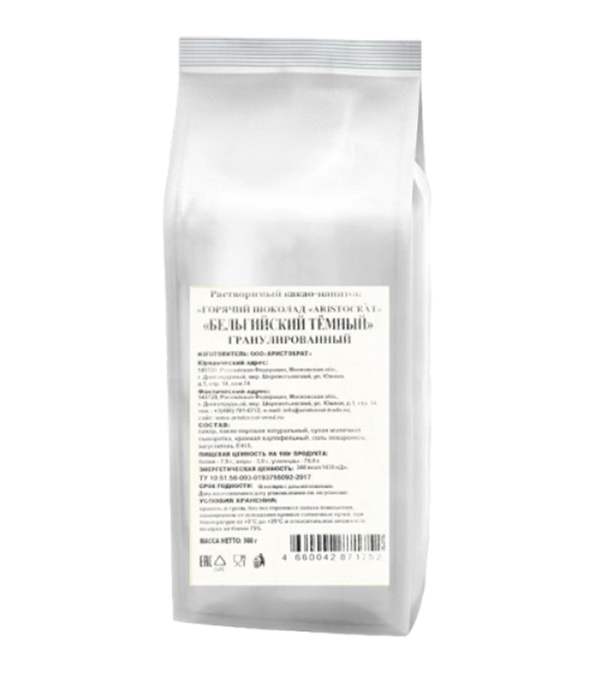 Горячий шоколад Аристократ Бельгийский — гранулированный горячий шоколад с мягким насыщенным вкусом. Сочетание всех компонентов придаёт напитку насыщенный терпкий вкус тёмного бельгийского шоколада.