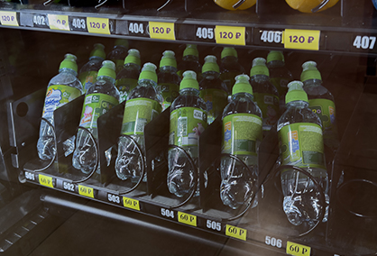 Автоматы оснащены широким ассортиментом продукции: вода, соки и различные