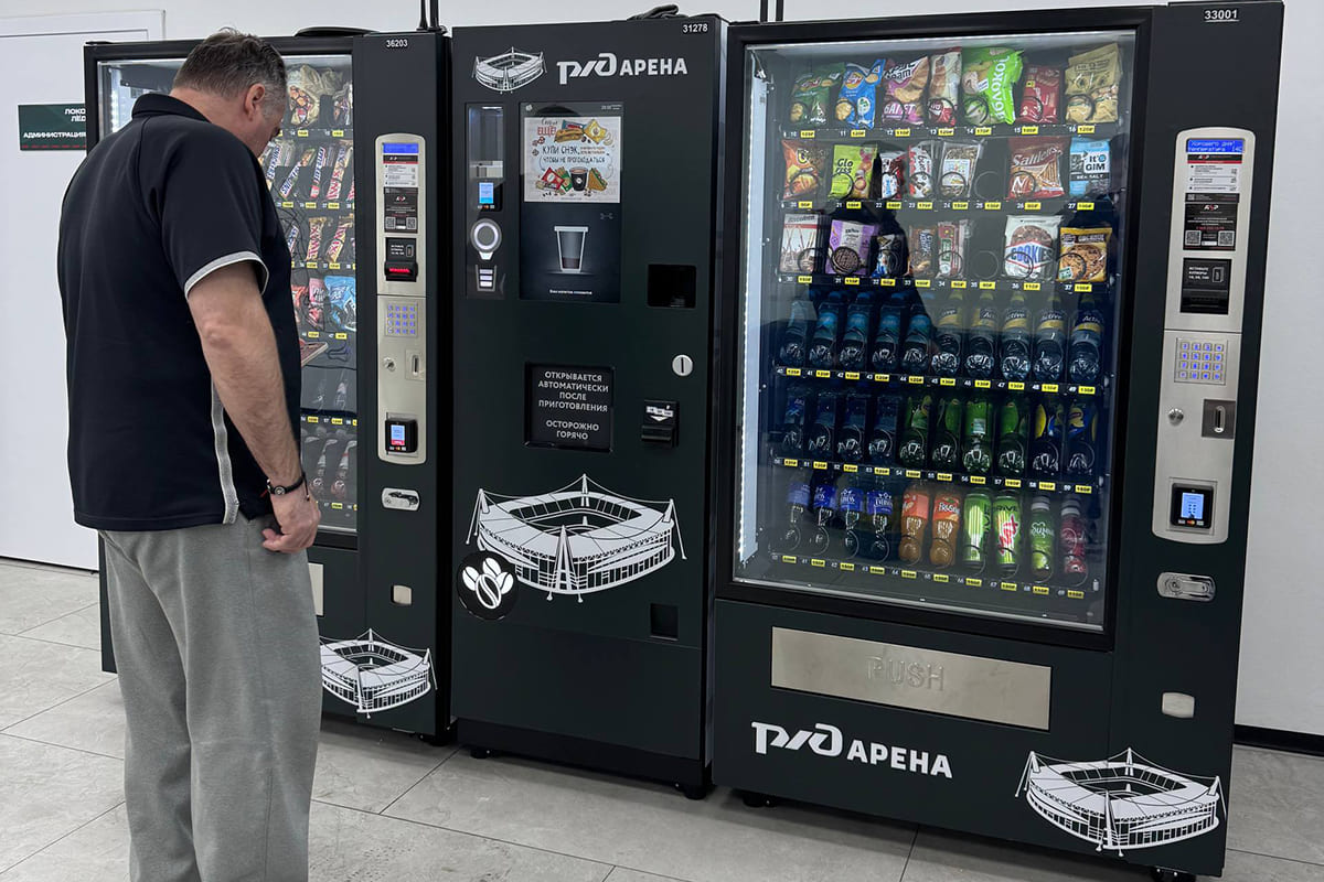 Задача: Установить 10 автоматов на территории стадиона, чтобы обеспечить гостей и сотрудников перекусом и кофе во время соревнований, массовых мероприятий.