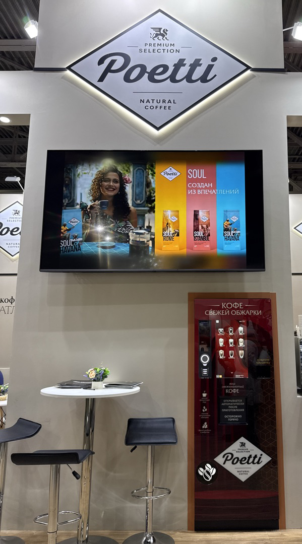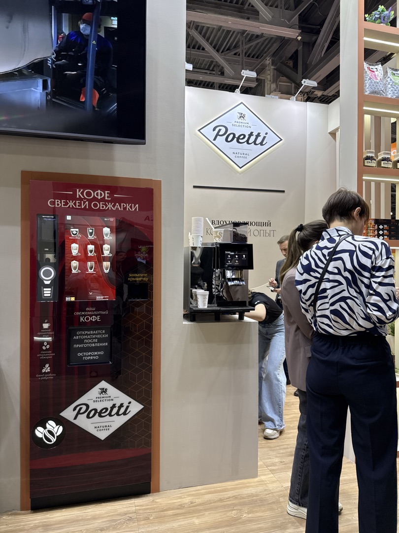 Компания АСП предоставила вендинговый автомат, который стильно и органично вписался в экспозицию Poetti. Автомат подчеркнул премиальный характер бренда и создал интерактивный элемент для посетителей стенда.