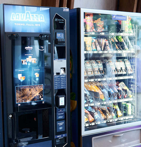 Комбинированный вендинговый автомат — это формат торговой точки, где одновременно предлагаются разные категории продуктов, например, кофе и снеки, или напитки и закуски, размещённые рядом в одной зоне обслуживания.