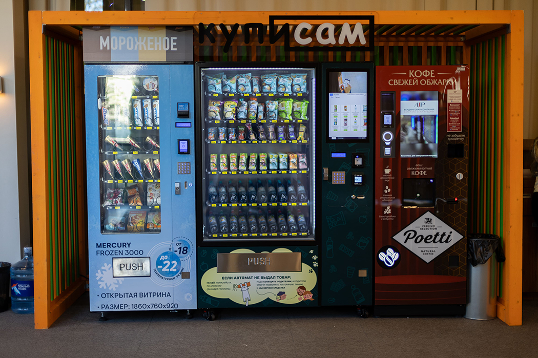 Формат органично встраивается в холлы жилых комплексов и БЦ, на вокзалы и в кампусы, у спорт- и фитнес-центров, в коридоры поликлиник и на уличные точки в защищённом корпусе. А рядом с кофейным и снековым автоматами он даёт заметную «прибавку» к среднему чеку: кофе + десерт, вода в жару + мороженое — понятные комбинации для импульсной покупки.